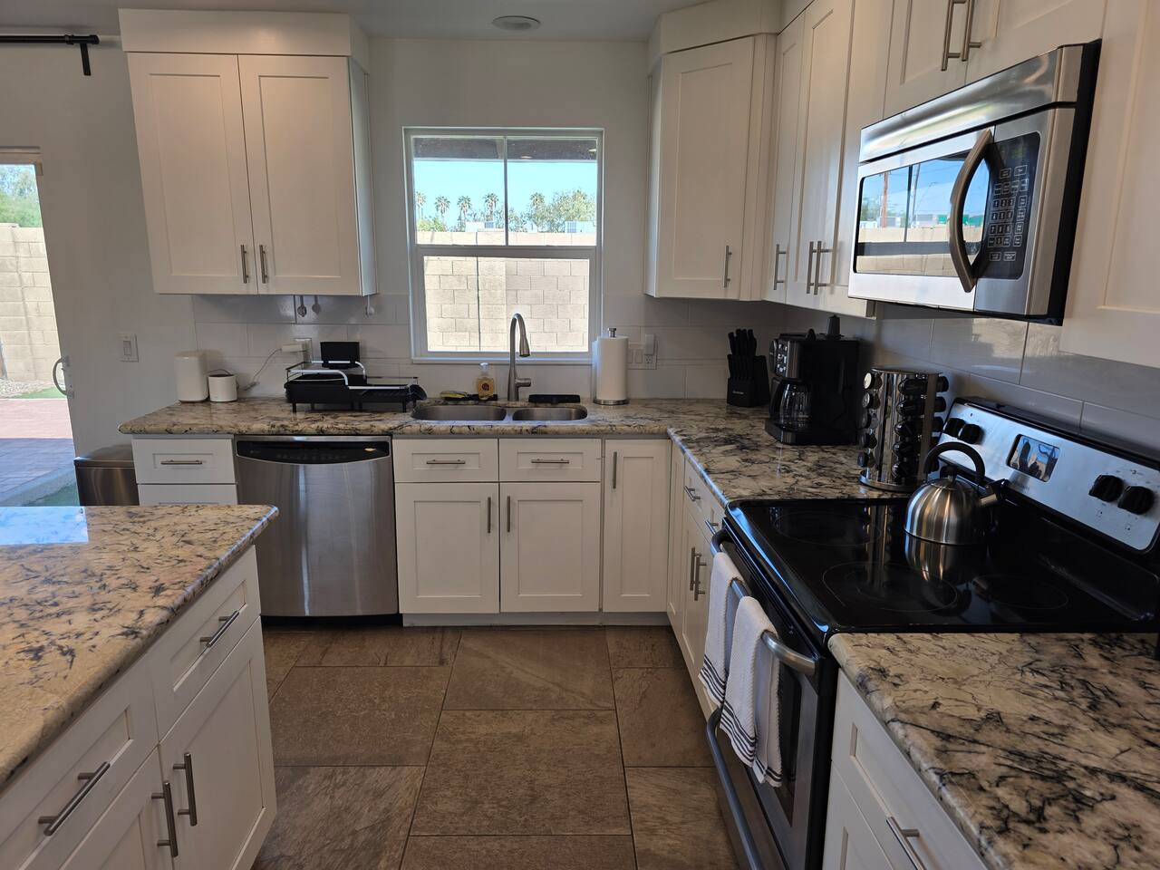 The 6th Street Retreat is a charming and professionally maintained 5-bedroom, 3-bath home in the heart of Tempe. The house offers a rustic, cozy vibe with comfortable furnishings and a warm, welcoming atmosphere. Itâs a social yet respectful co-living space, ideal for working professionals, grad students, and weekend visitors looking for a quiet, convenient stay near ASU and Mill Avenue. Inside, youâll find a bright and spacious layout with a fully stocked kitchen, inviting living and dining areas, and thoughtful design touches throughout. The kitchen includes everything you need Keurig, a toaster, a blender, cookware, and spices, perfect for cooking and sharing meals. Each guest enjoys a private, lockable bedroom, while the common areas are shared and cleaned regularly to keep everything fresh and organized. Laundry is available in the home, and outside, youâll find a relaxing backyard patio with seating, great for morning coffee or winding down after a long day. The home sits in a vibrant Tempe neighborhood, close to restaurants, parks, and entertainment. Youâre just a mile from ASU, Tempe Town Lake, and Mill Ave, and minutes from the airport. Nearby favorites include Culinary Dropout, The Shop Beer Co., Perfect Pear Bistro, and Jaycee Park. Whether youâre staying a few nights or a few weeks, The 6th Street Retreat blends comfort, community, and convenience, making it the perfect home base during your time in Tempe. đ”