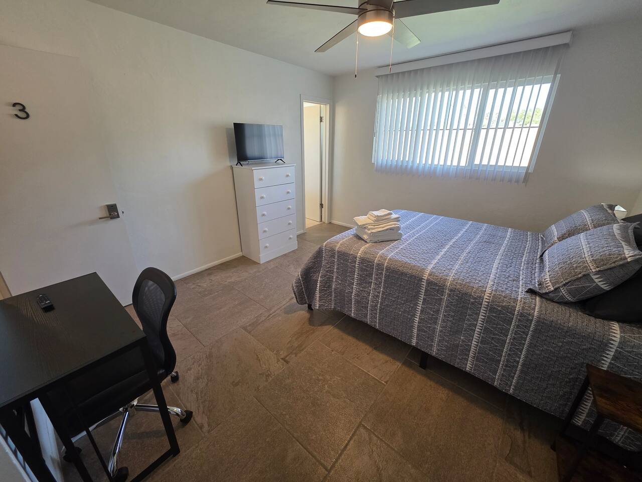 Stay in Prime Tempe Room #3 at The 6th Street Retreat! đĄ This cozy master suite features a queen bed, private bathroom, Smart TV, desk, mini-fridge, and fast Wi-Fi, ideal for work or relaxation. Enjoy a professionally cleaned home with a washer/dryer and free parking (driveway first come). Just 1 mile from ASU, Mill Ave & Tempe Town Lake, and minutes to Sky Harbor. Perfect for traveling pros, students, or weekend guests! License # STR-001191