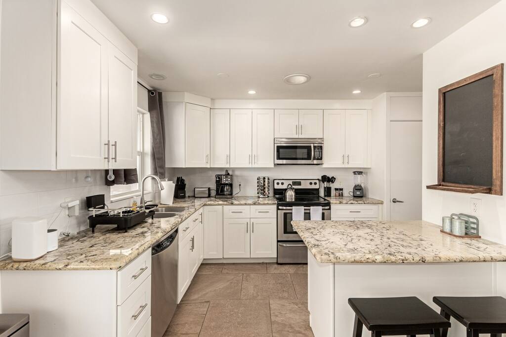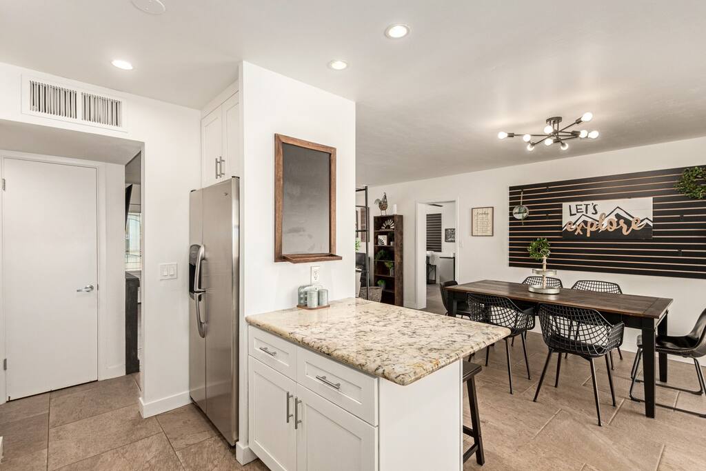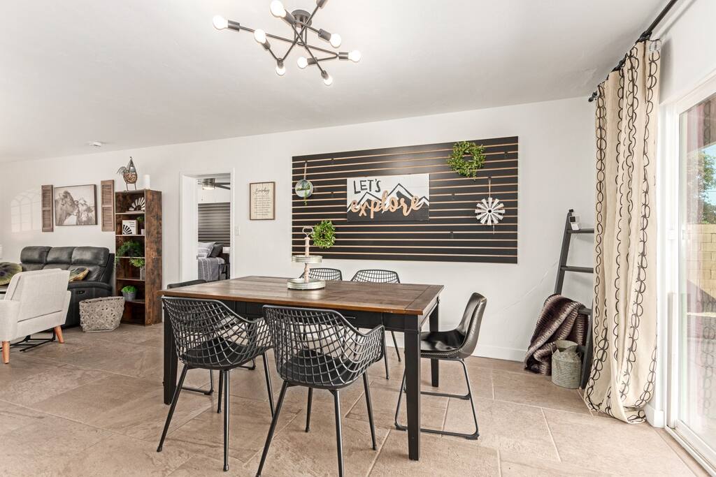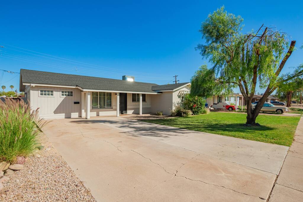 The 6th Street Retreat is a charming and professionally maintained 5-bedroom, 3-bath home in the heart of Tempe. The house offers a rustic, cozy vibe with comfortable furnishings and a warm, welcoming atmosphere. It’s a social yet respectful co-living space, ideal for working professionals, grad students, and weekend visitors looking for a quiet, convenient stay near ASU and Mill Avenue. Inside, you’ll find a bright and spacious layout with a fully stocked kitchen, inviting living and dining areas, and thoughtful design touches throughout. The kitchen includes everything you need Keurig, a toaster, a blender, cookware, and spices, perfect for cooking and sharing meals. Each guest enjoys a private, lockable bedroom, while the common areas are shared and cleaned regularly to keep everything fresh and organized. Laundry is available in the home, and outside, you’ll find a relaxing backyard patio with seating, great for morning coffee or winding down after a long day. The home sits in a vibrant Tempe neighborhood, close to restaurants, parks, and entertainment. You’re just a mile from ASU, Tempe Town Lake, and Mill Ave, and minutes from the airport. Nearby favorites include Culinary Dropout, The Shop Beer Co., Perfect Pear Bistro, and Jaycee Park. Whether you’re staying a few nights or a few weeks, The 6th Street Retreat blends comfort, community, and convenience, making it the perfect home base during your time in Tempe. 🌵